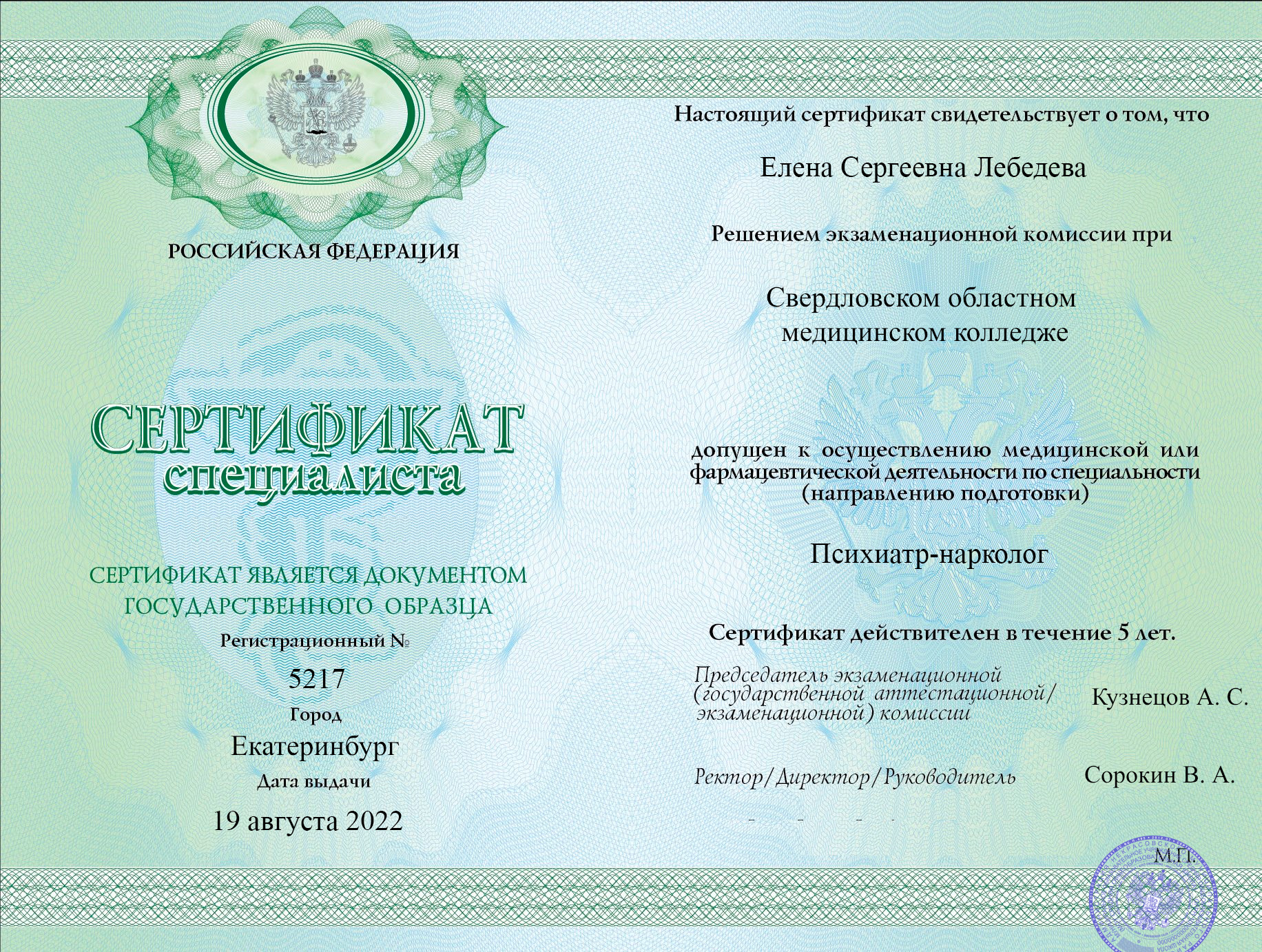 Елена Сергеевна Лебедева врач нарколог клиники доктора Стукаловой в Скопине